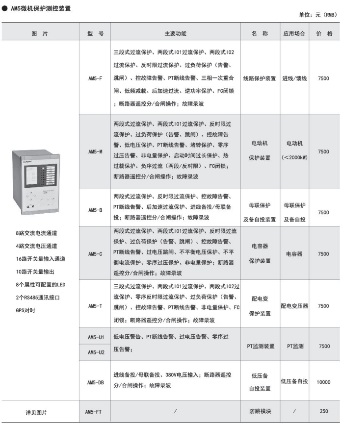 | AM5-M 電動機保護測控裝置 | 電動機<2000kW |