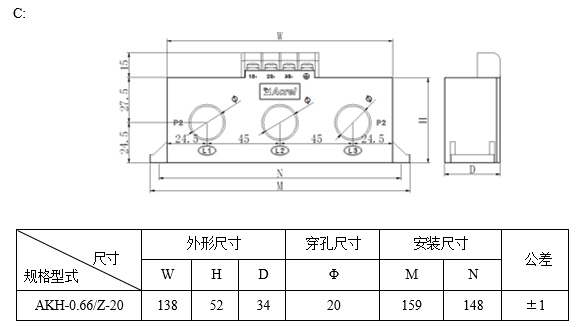 AKH-0.66 Z型系列三相導軌式電流互感器