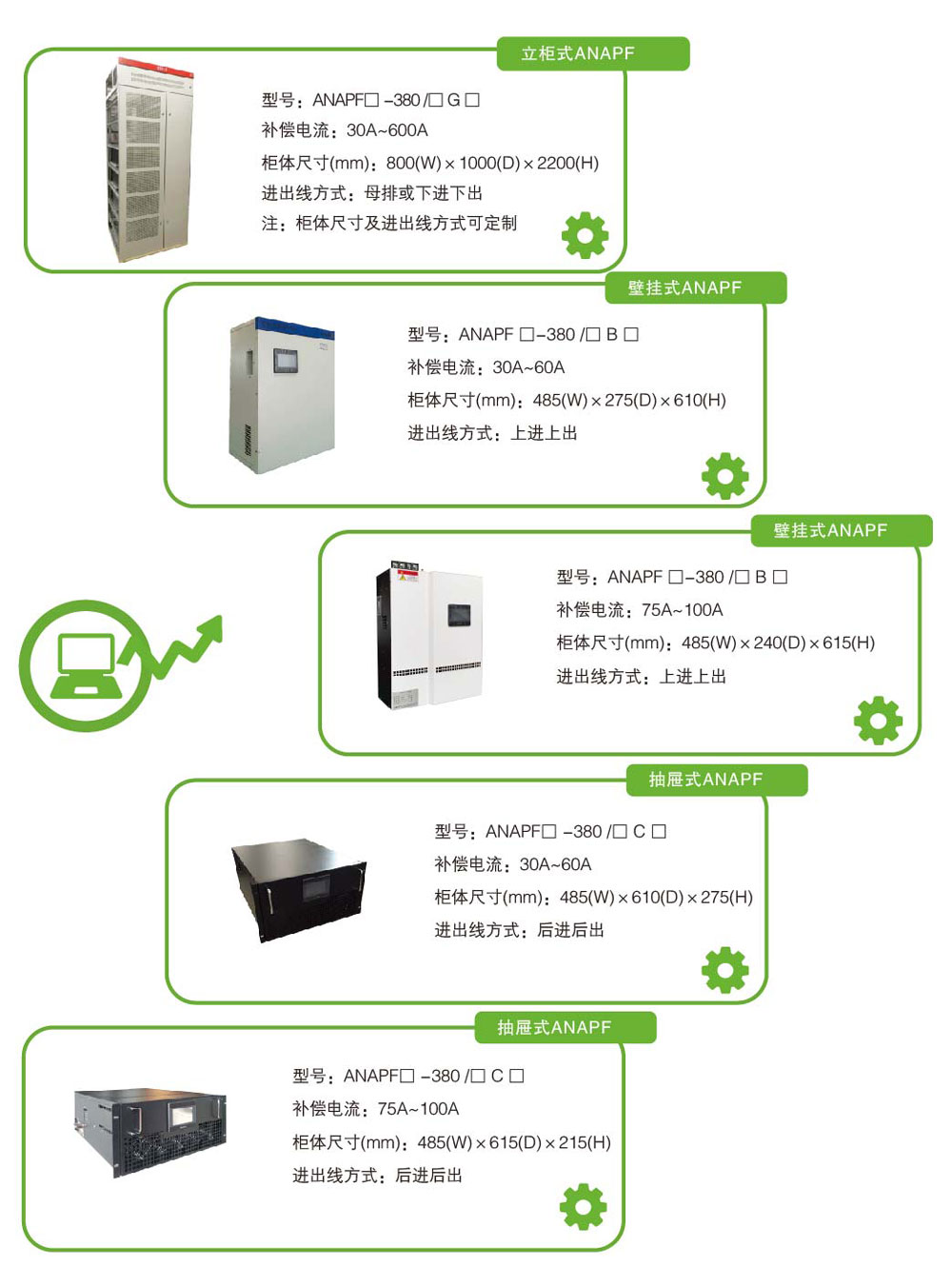 適用于并聯(lián)在含諧波負(fù)載的低壓配電系統(tǒng)中,能夠?qū)?dòng)態(tài)變化的諧波電流進(jìn)行快速實(shí)時(shí)的跟蹤和補(bǔ)償。訂貨范例:
